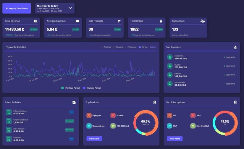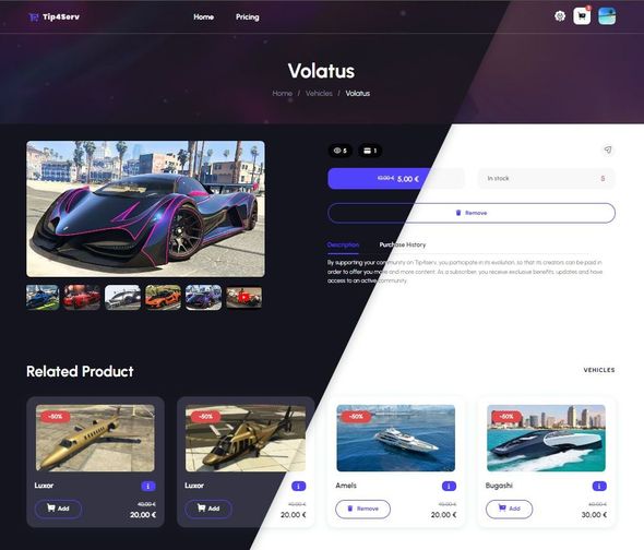 With Tip4Serv, you can create your own custom shop to sell roles, items, and access — all beautifully designed for Discord and your favorite games.
