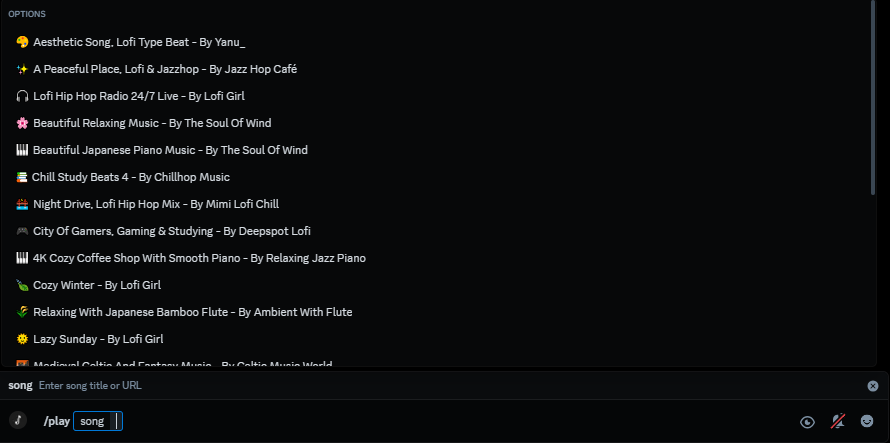 playPlays a song from a specified URL or searches by title.
