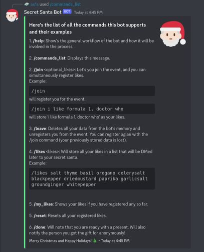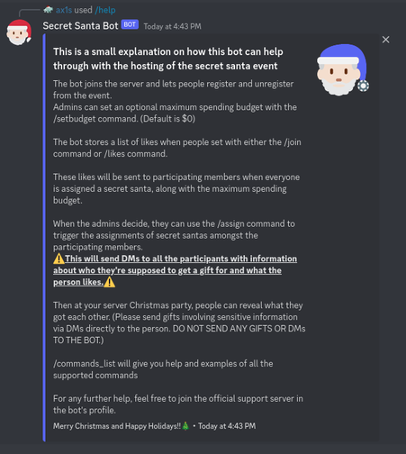 Now its easy to host a Secret Santa event on your server!! Add Secret Santa Bot to do the randomizing and assigning and make your life easier!