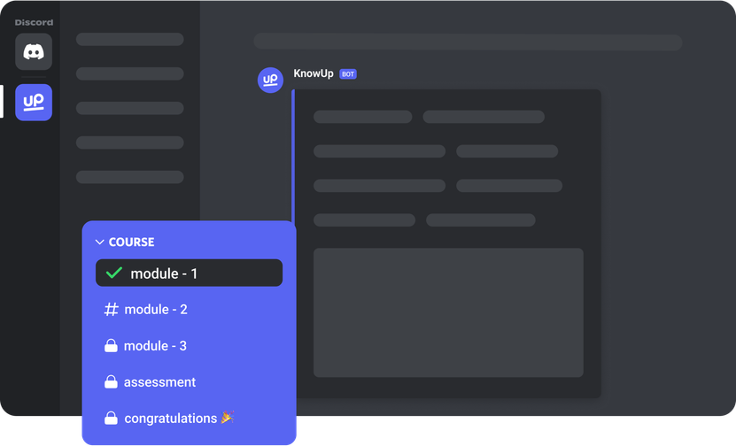 KnowUp is the easiest, fastest, and only specialized Discord app for creating courses and quizzes. Create messages (a.k.a. content cards) sequentially, preferably enriching them with media, and that’s all. Set conditions for leveling based on course completions and the success rate of quizzes.
