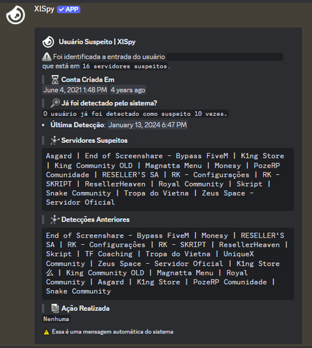 🕵️ Sistema de monitoramento da entrada de usuários que utilizam trapaças mais utilizado por servidores da plataforma FiveM.