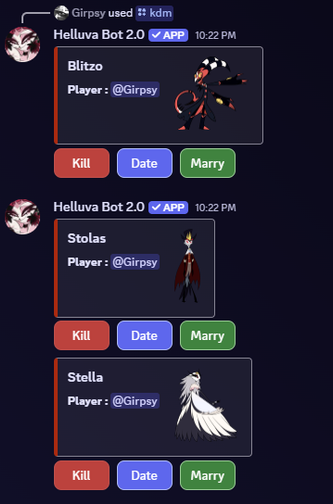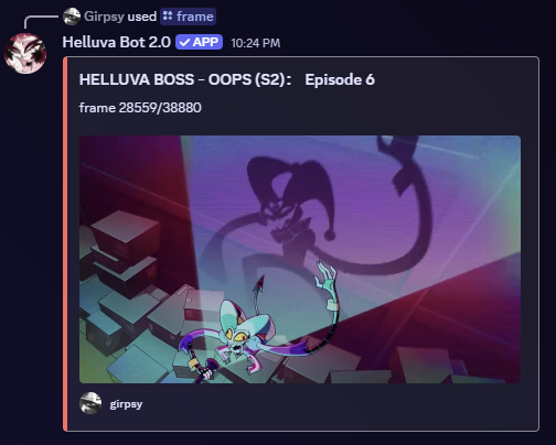 A Helluva Boss / Hazbin Hotel fan-made bot! Terms Of Service https://girps.github.io/Helluva-Bot-TOS/ Private Policy https://girps.github.io/Helluva-Bot-TOS/privacy