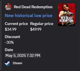 - When a game from your wishlist reaches a historic low price on Steam