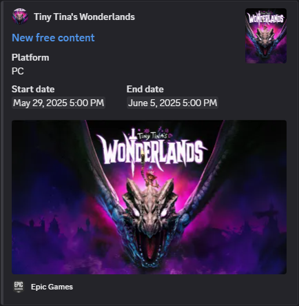 - About free promotions for games on multiple platforms (Steam, Epic Games, GOG, Amazon Luna)