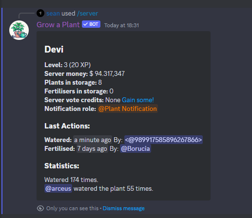 ๐ Use the /server command to get up-to-the-minute updates and engage in a community of like-minded plant lovers. You're not just growing a plant; you're cultivating a community! ๐ค