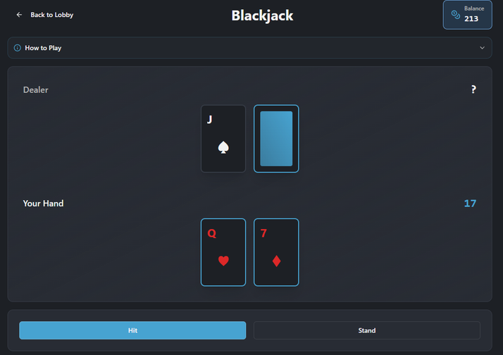 โข First Steps โ Play your first game โข Game Explorer โ Try 5 different games โข High Roller โ Hit 10,000 coins โข Millionaire โ Reach 1,000,000 coins โข Win Streak Master โ 5 wins in a row โข Dedicated Player โ 100+ total games โข Card Shark โ Master every card table โข Slot Enthusiast โ 50+ spins