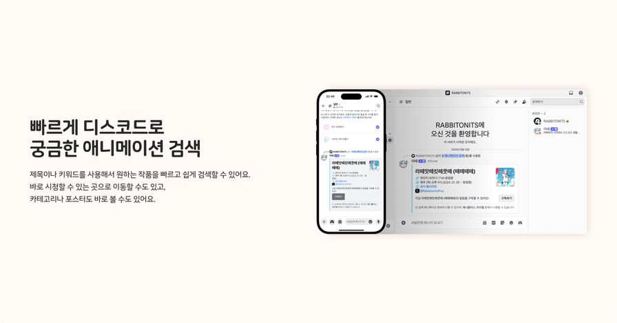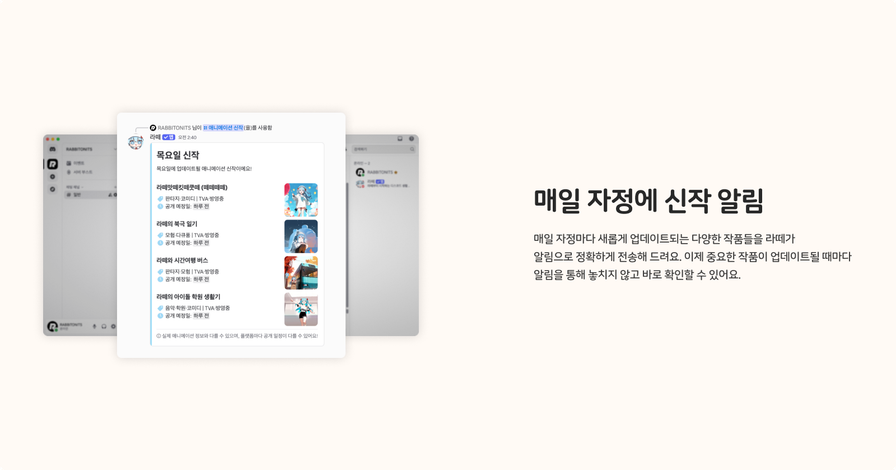 ✨ 라떼 한 잔에 떠나는 애니메이션 여행 디스코드에서 라떼로 애니메이션 세계를 자유롭게 여행하세요! 라떼는 애니메이션 알림과 검색 기능을 통해 좋아하는 애니메이션을 간편하게 관리하고 새로운 작품들을 탐험할 수 있도록 도와주는 디스코드 봇이에요.