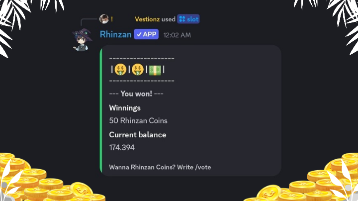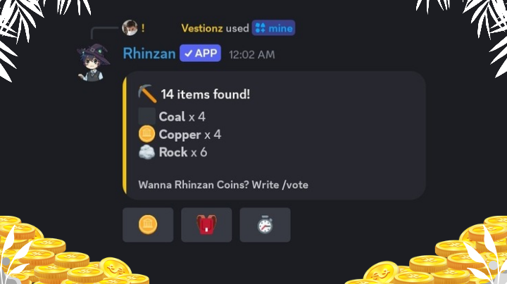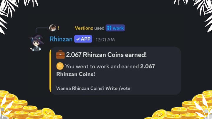 🗳️ Vote Rewards: Support Rhinzan on Top.gg and earn bonus coins each time you vote 💎.