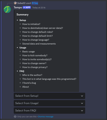 - Tempo can also be a solution for large Guilds, as channel owners can set the visibility of the channel, so they can control who can enter the channel.
