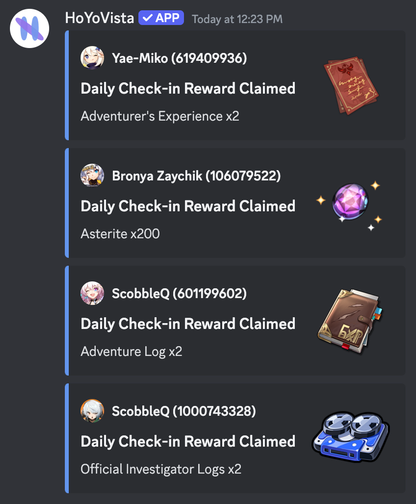 Empower your HoYoverse experience with this HoYoLAB Bot! Access all the HoYoLAB features right from Discord, including daily check-ins, auto code redemptions, and more!