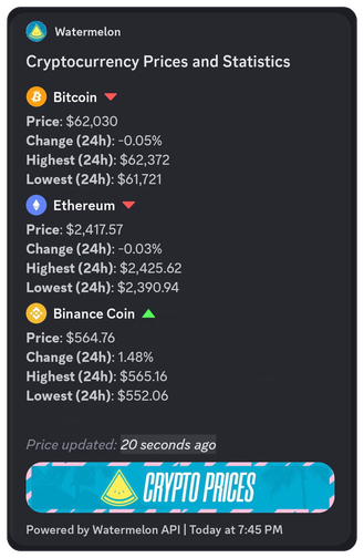 Watermelon🍉 is a bot designed to make your Discord server more interactive and fun by combining economy, cryptocurrency trading, and social features.