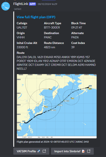 Enables easy sharing of Simbrief flightplans with Discord users (with associated functionality such as VATSIM prefile), and will soon bring route generation functionality to Discord.