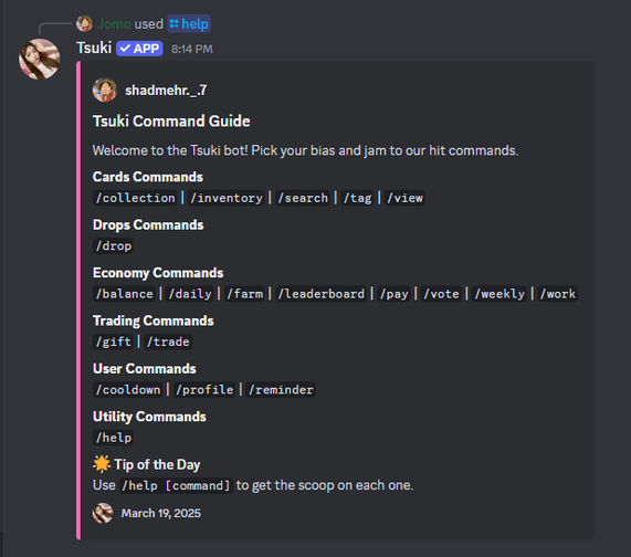 Verified1,960 servers🌟 Tsuki – The Ultimate K-Pop Card Collecting Bot! 🎴✨