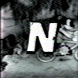 A mischievous black-and-white cartoon mashup, like Tom and Jerry got stuck in a cosmic TV screen. In the middle, a bold, slightly wonky 'N' slaps itself over them, like it's crashing the scene without permission. Pure vintage chaos in space
