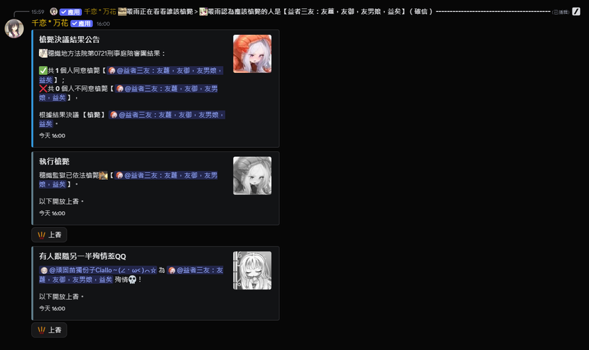 /抓ㄌㄌㄎ砲決管理設定:可以調整伺服器關於「抓ㄌㄌㄎ砲決」的功能。