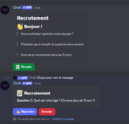 Chell : L’assistant ultime pour votre serveur Discord. Optimisez la gestion et la sécurité de votre serveur avec des fonctionnalités puissantes comme l'AutoModoration IA , Règement, Vérification, Ticket , Recrutement, Autorole, AntiGhostPing, giveaways, sondages et plus encore !