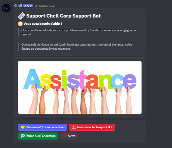 Pour toute demande de support ou autre veuillez vous rendre sur le serveur Support du bot ou sur notre site https://chell.fr