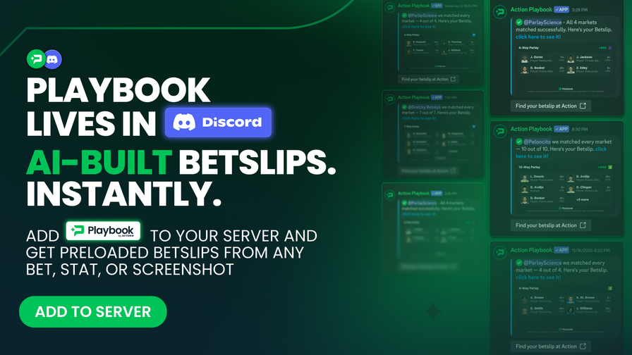 Manual bets are over. With Playbook, all you need to do is tag @ActionPlaybook in a message - whether you’re posting your own bet or replying under someone else’s - and in seconds, you’ll get a personalized bet slip link. Preloaded, one click away, and ready to place at the sportsbook of your choice.