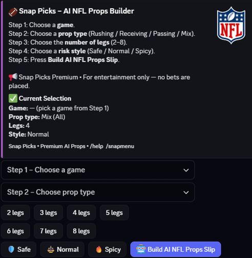 ⚠️ Disclaimer Snap Picks is for entertainment purposes only. It does not place bets, handle money, or guarantee outcomes, and is not affiliated with any sportsbook.