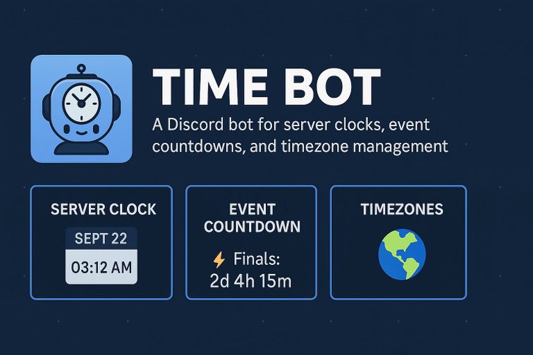 Time Bot is lightweight, multi-server ready, and perfect for gaming clans, event groups, and global communities.