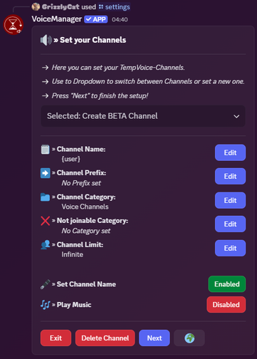 - Easily create temporary voice channels that are customized by the owner.