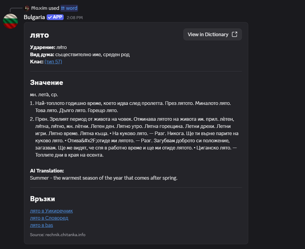 - Word Information: Provides pronunciation, meaning, synonyms, and more for Bulgarian words.