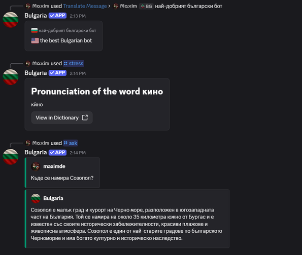 Get assistance throughout your journey of learning Bulgarian with this bot.