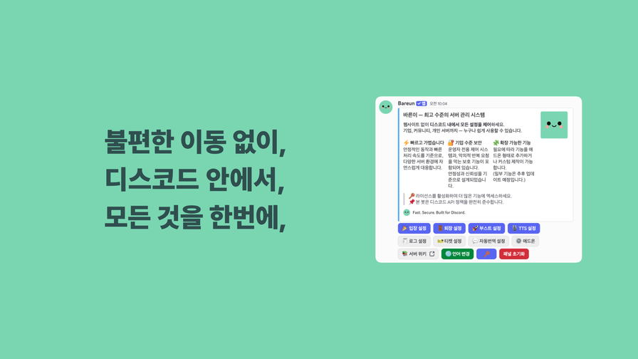 Manage events · tickets · logs · translation · TTS in Discord — start running your server with a completely new structure.
