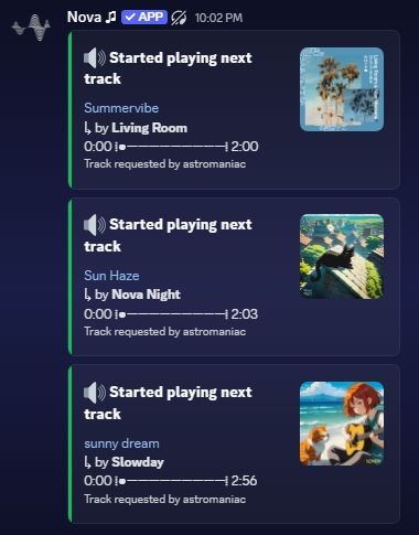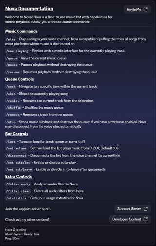 Nova is a free plug-and-play music bot built for accessibility. Want to play your favorite song? Want to play your favorite playlist? Want to add a filter to your tunes? Nova can do all that with a command. Use /help to get started today!