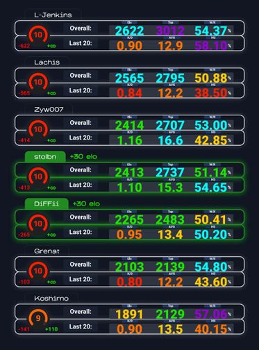 - Team ELO Statistics - Check current ELO ratings and track changes across team members