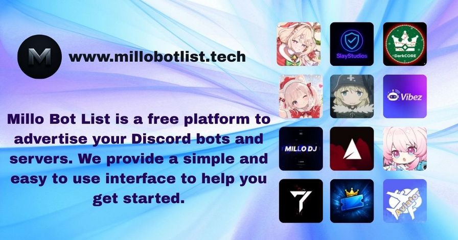Millo Bot List is a free platform to advertise your Discord bots and servers. We provide a simple and easy to use interface to help you get started.