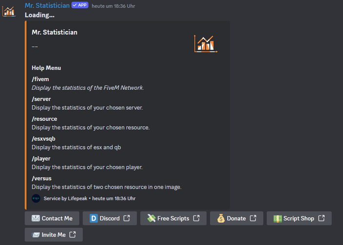 Hey FiveM Community, I developed a statistics bot 📊 for FiveM, which shows statistics of all used resources 📁 , players 👤 and servers 🌐.