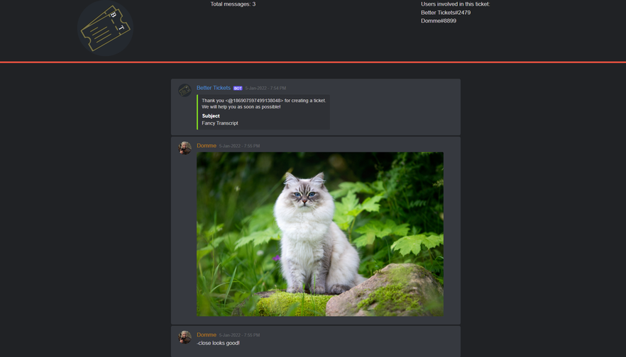 receive – Whether you want to receive the transcript via DM or not when closing your tickets