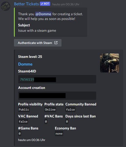- Devmode for easier information access for other bot developers or general ticket log