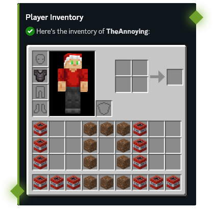 Moderate and connect your Minecraft server with Discord! This bot allows you to view minecraft stats, advancements, and even inventories of any member in Discord. Also supports a powerful two-way chat with Minecraft, command execution and many other helpful features.