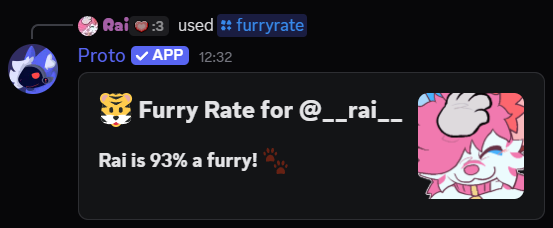 /furryrate | 🦊 Rate how much of a furry someone is! userThe user to rate |