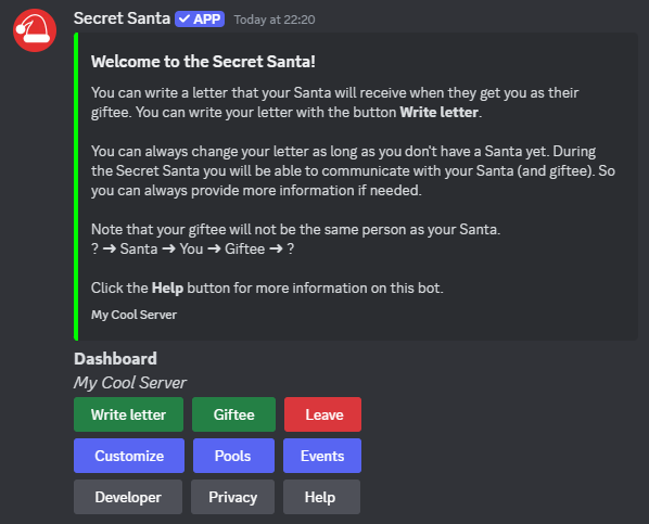 Secret Santa is the bot for hosting Secret Santas on Discord.