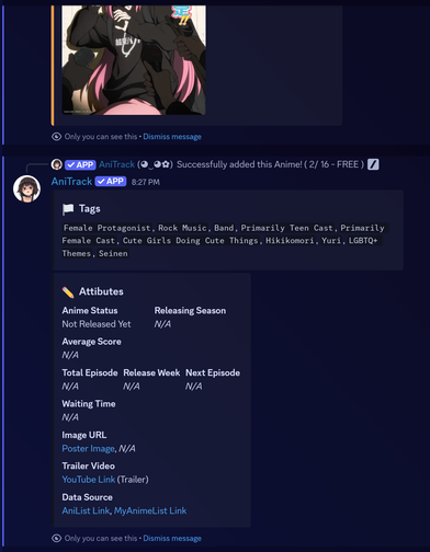 → Setup notification channel! /anime admin setchannel <#channel>