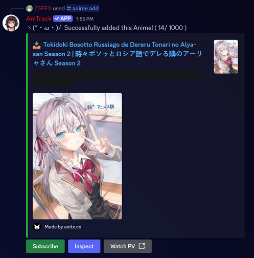 → (Optionally) Subscribe to specific Anime on your added list to get @ping