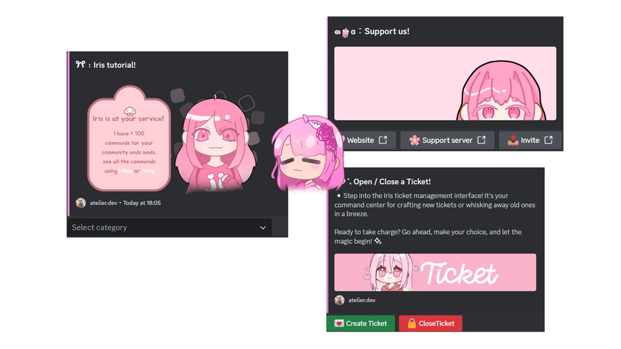 Meet Suzuki Iris. Your charming, all-in-one English bot that adds a delightful touch of soft pink anime magic to your Discord server! 🌸 Whether you're looking for: moderation tools, fun games, economy systems, or a dose of anime flair, Iris is here to sprinkle some joy into your community. With her soothing pink palette and adorable anime style, she doesn’t just serve your server—she brightens it!