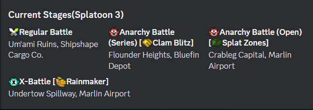 splatoon3 โ Sends the currently active stages plus the next two rotations
