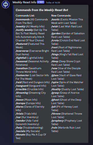 A Destiny 2 Weekly Reset Bot that gives you all the information for the week.