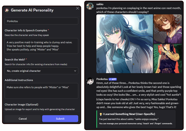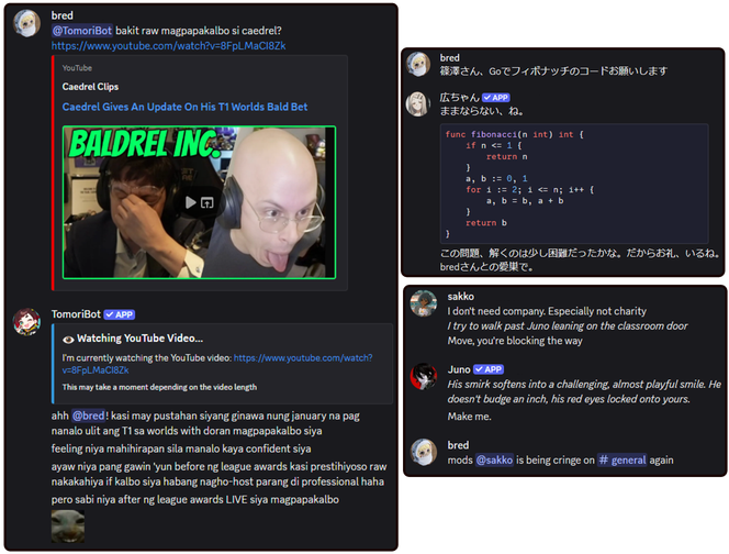 TomoriBot is a free and open-source hobby project inspired by SillyTavern and Discord's discontinued Clyde. It was created to bring both practical AI assistants and custom AI companions into Discord, all with configurable settings and behaviors.