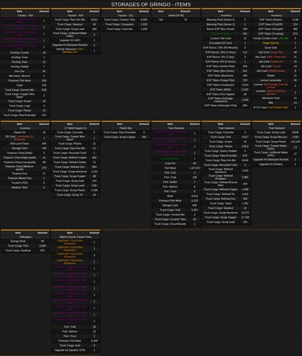 all – Shows all storages of the player