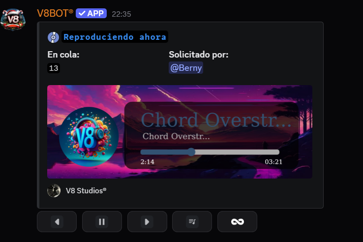 ✨ Hola, V8 es un bot multifuncional diseñado para ofrecer una experiencia completa y moderna en tu servidor de Discord. A continuación, sus características más destacadas: