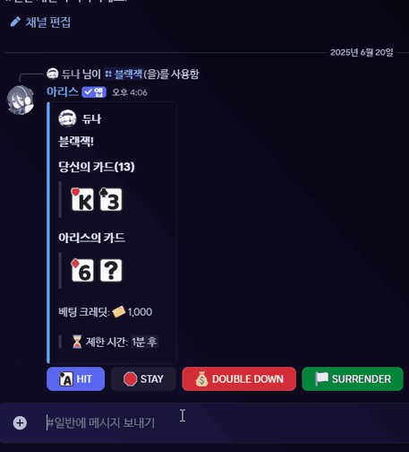 | /blackjack | Play a game of blackjack with Aris. |