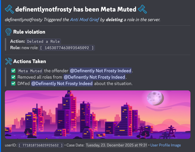 Meta can be setted up in your server with only 1 command and the rest is for you to choose. Help yourself and use Meta to secure your server. Experience the premium quality that no other app has, and the best thing is. WE GIVE IT TO YOU FOR FREE!