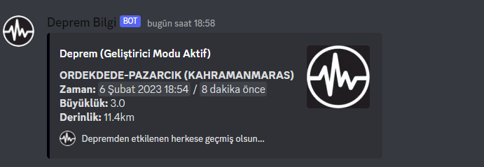 Türkiye ve yakınındaki depremleri Discord üzerinden görüntüleyin!