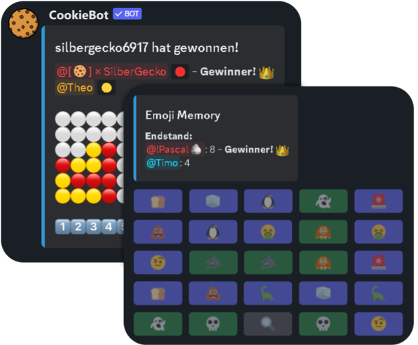 Play minigames with your friends, such as Connect4, Hangman, Emoji Memory & More. Works in private chats as well!