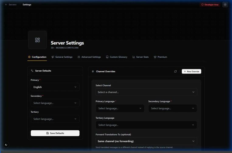 - Analytics: View real-time graphs of your community's translation usage directly from the control panel.